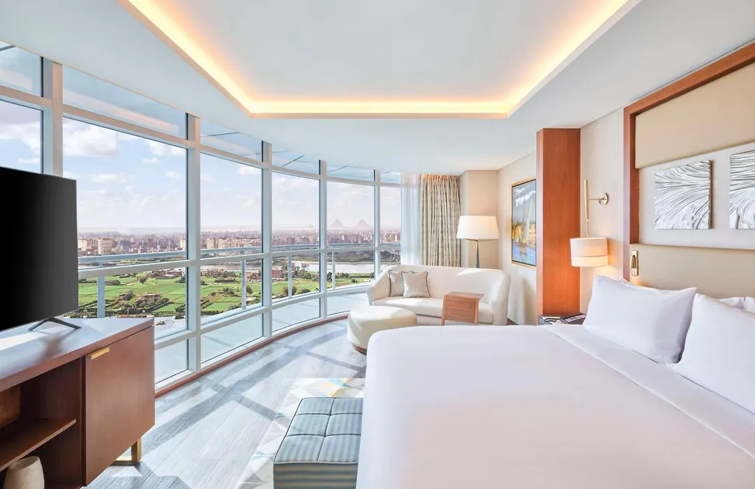 El hotel Hilton Cairo Nile Maadi dispone de 254 cuartos con minibar y servicio de tetera/cafetera, y comodidades modernas como TV de pantalla plana con canales vía satélite. Los baños disponen de ducha a ras de suelo y un inodoro separado, además de instalaciones como secador de pelo y albornoces. Este hotel cuenta con cálidas habitaciones con vistas al río.